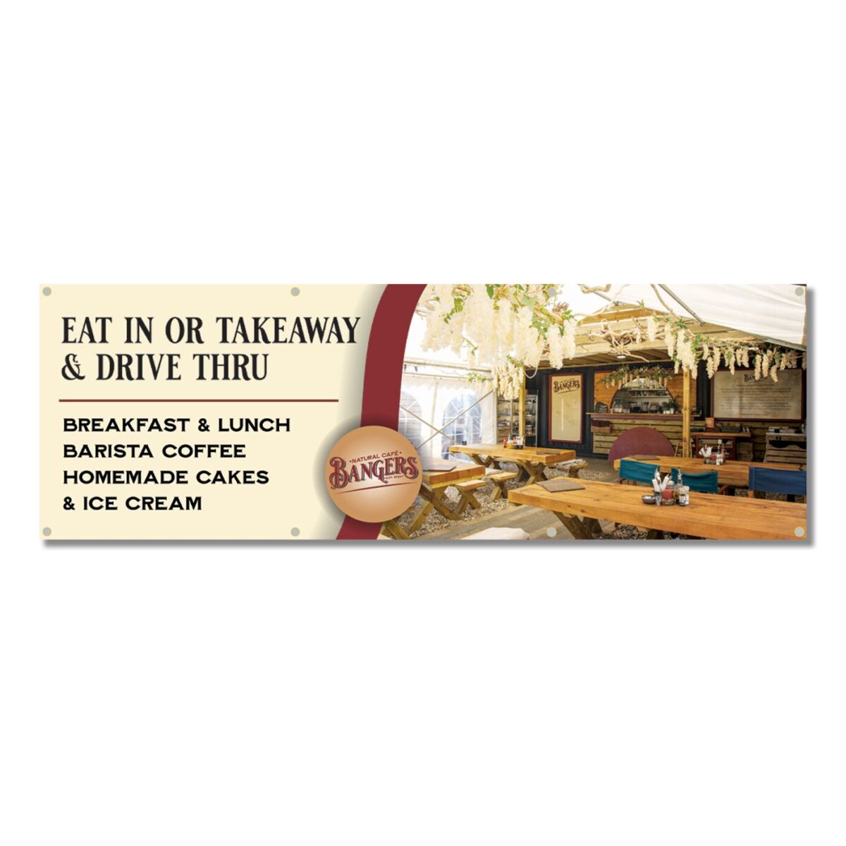 Promotional Full Print Vinyl Banners, printed in full colour with reinforced eyelets and hems. Ideal for indoor or outdoor promotions and advertising. These are not disposable banners. They are reusable for static information and regular events.