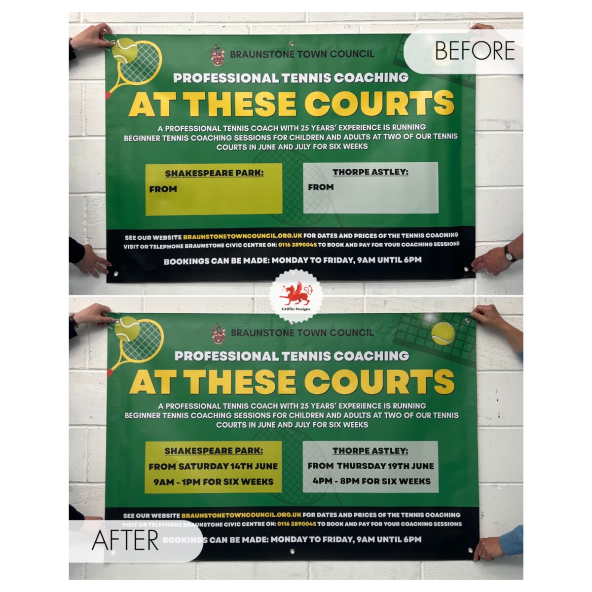 Looking to update your re-usable vinyl advertising banner with new vinyl writing? You’ve come to the right place! We can provide any new lettering or vinyl graphics you require for your banner update this year. This includes, lettering, QR codes, sponsorship logos etc. Simply check which elements of your banner were applied in vinyl at the time of ordering and inform us of the changes you wish to make. All lettering is priced on a quote-by-quote basis to ensure you’re paying only for the graphics you require. Only need to change 1 digit? No problem! Pricing starts from £10.00 excl VAT.